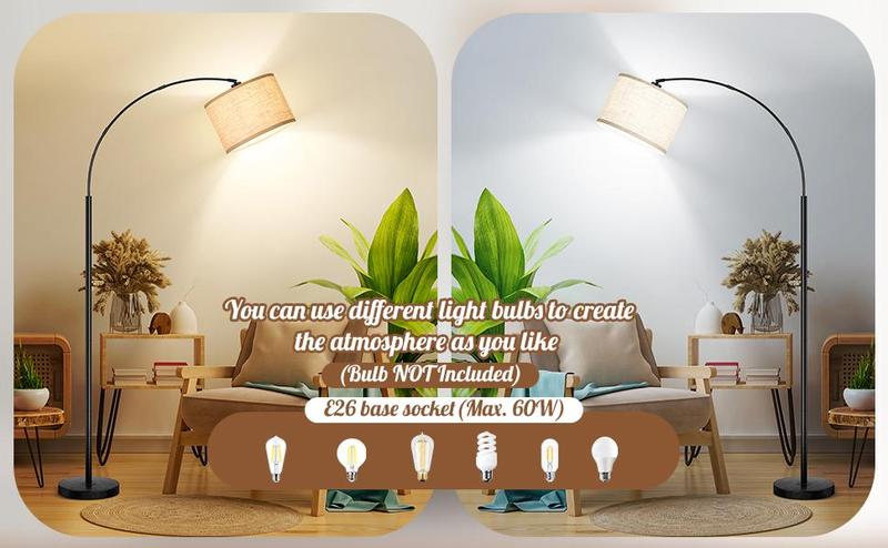 The arc's styling and drum lampshade design of our standing lamp will be an accent for various home decor styles.
