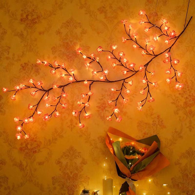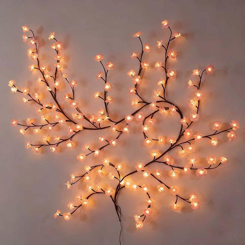 Transform your space with these Pink Cherry Blossom Tree Branches Flower LED Lights. Perfect for walls, these 1.8m lights feature 96 enchanting flowers. Ideal for Christmas, fireplaces, and mantles, they add a magical touch. Indoor decor that USB powers, these lights come with a remote for easy control. 🌟