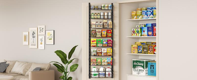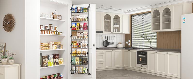 Elevate your kitchen storage with this 6-8 Tier Pantry Organizer. Perfect for hanging spice racks, this organizer offers easy installation on cabinet doors. It keeps your pantry organized, making it ideal for home & kitchen essentials. 🍽️
