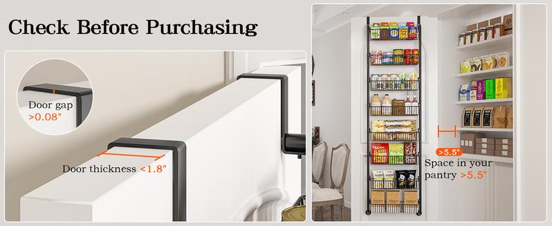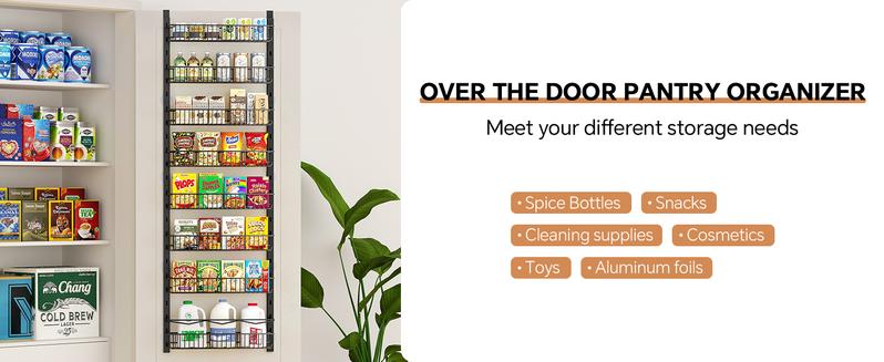 Over the Door Pantry Organizer 6-8 Tier Hanging Spice Rack for Easy Install Cabinet Door Organizer Home Kitchen Essentials Multi-Functional Storage Solution