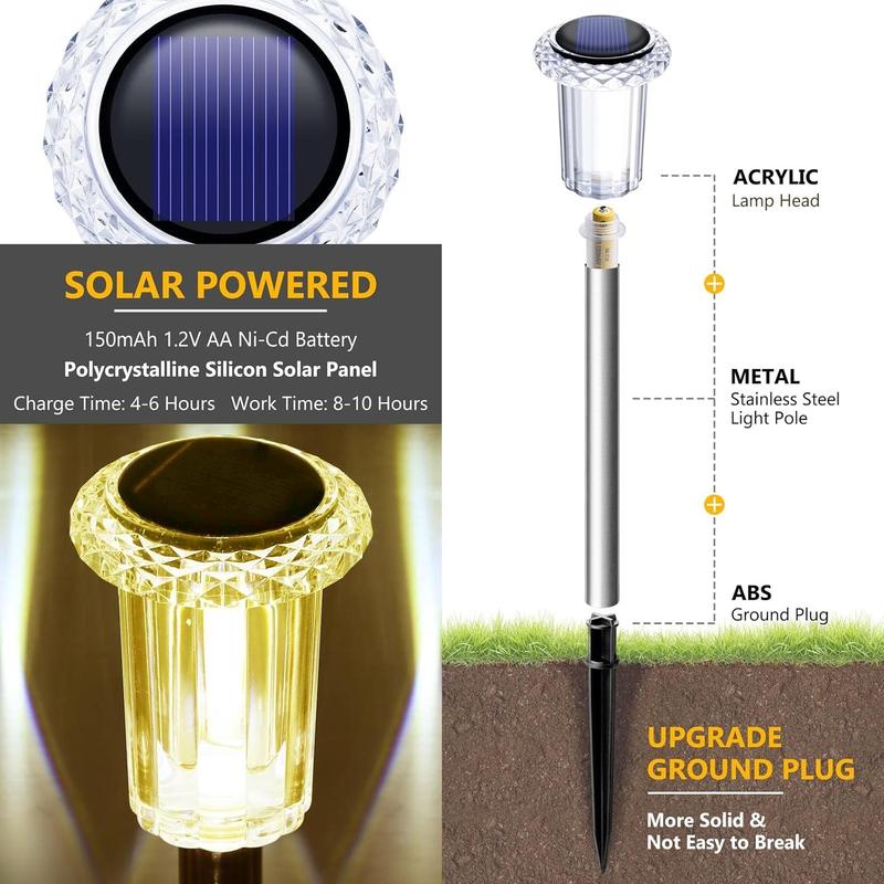 Integrated Design - The lampshade of the solar garden lights is integrally formed with the solar panel. The transparent lampshade emits 3000K warm white light, bright and delicate.